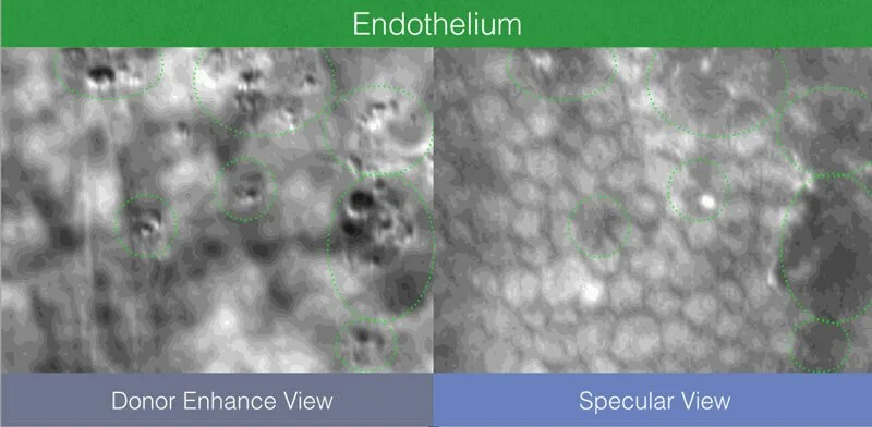 CellChek® D+ features a patent applied for “Donor Enhance” imaging system that provides remarkable views of endothelium, intra-stromal structure, and the epithelium. The range of new information from which to make better clinical decision is valuable: blood cells, fungus, rough keratome cuts, dead cells, epithelial anomalies. Never have we had this view of pre-implanted material. Corneal surgeons are finding this information to be illuminating in helping to understand graft success and failure.